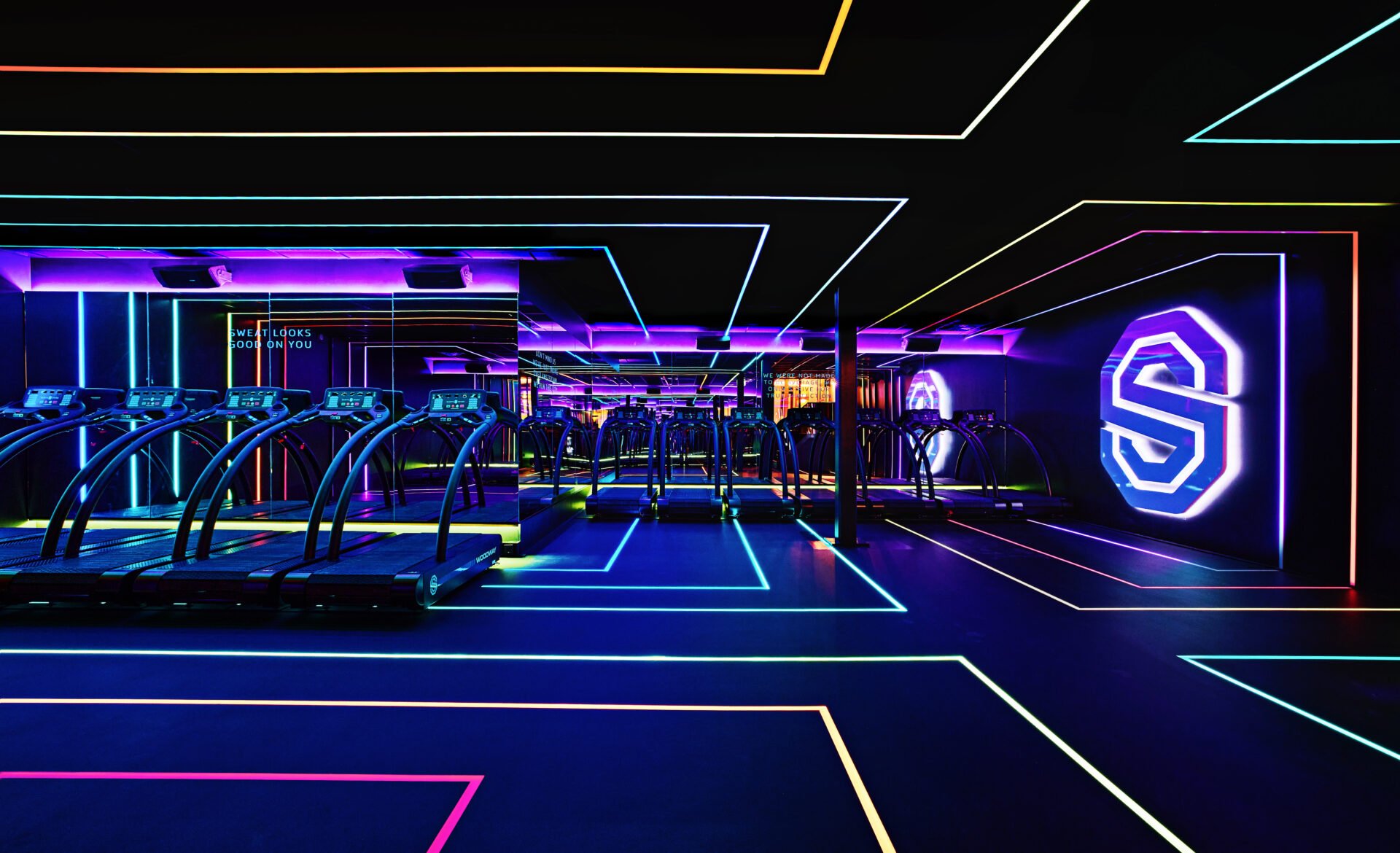 This gym is like a club with a dance floor. High-end speakers, deep thumping sub-woofers and a professional Pioneer DJ booth. Standing still is impossible.