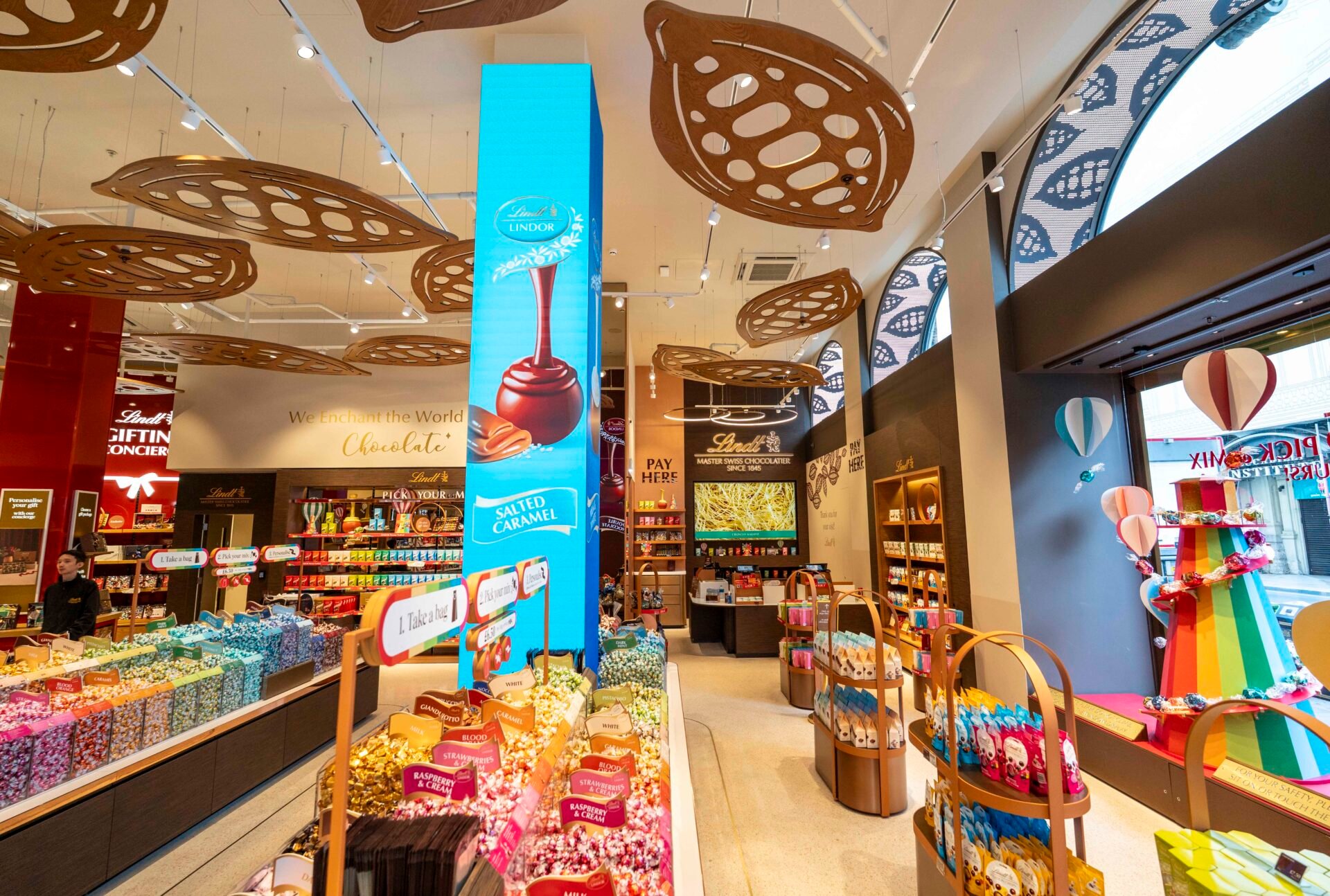 Once inside, all eyes are drawn to the centerpiece: a 4-meter high LED pillar wrapped around a structural column. The screen plays a custom-made 3D animation that brings Lindt’s pick & mix concept to life allowing customers to create their selection of chocolates, right on the spot. The animation shows how it works in a clear, playful way and turns a simple choice into an experience. It’s not just a pillar — it’s a moment of delight that adds flavour to the entire store visit.
