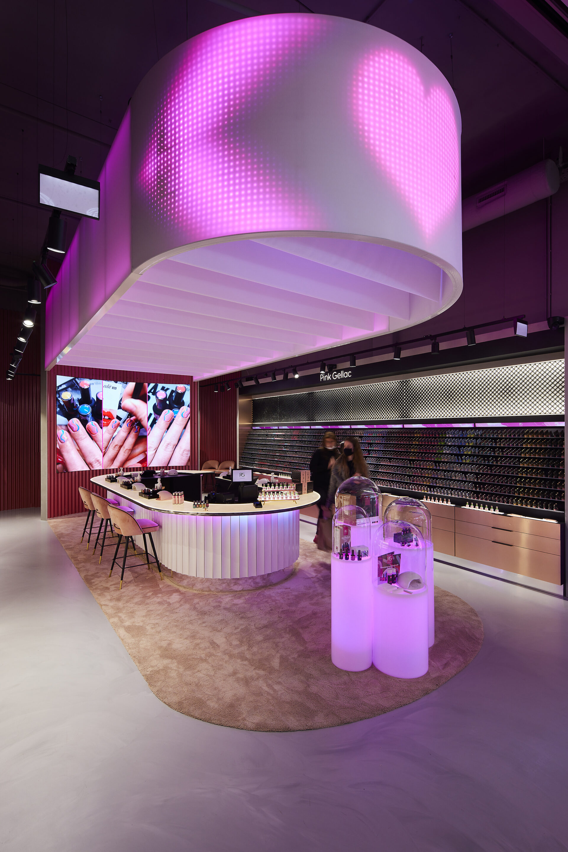 Pink Gellac’s great desire is to keep the line between the online and offline as thin as possible. First Impression took this assignment to heart in realising the audiovisual experience in what are currently Pink Gellac’s 17 shops. The displays, shelves and other interior items invite photographs.
