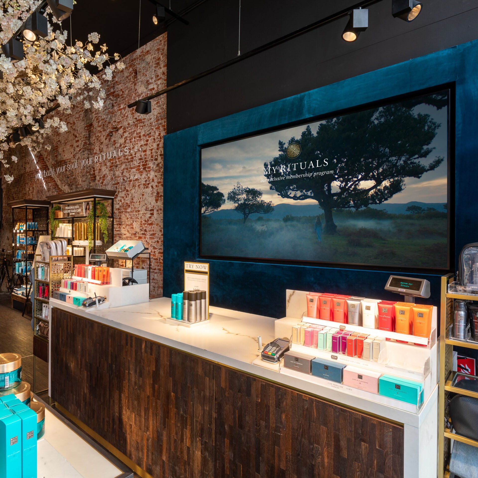 As part of Rituals’ glocal marketing strategy, all static light-box posters in the display windows and behind the cash points have been replaced with digital signage displays. Worldwide. Smart video content now easily tailors message, mood, timing and language to moment and location. Spot-on.