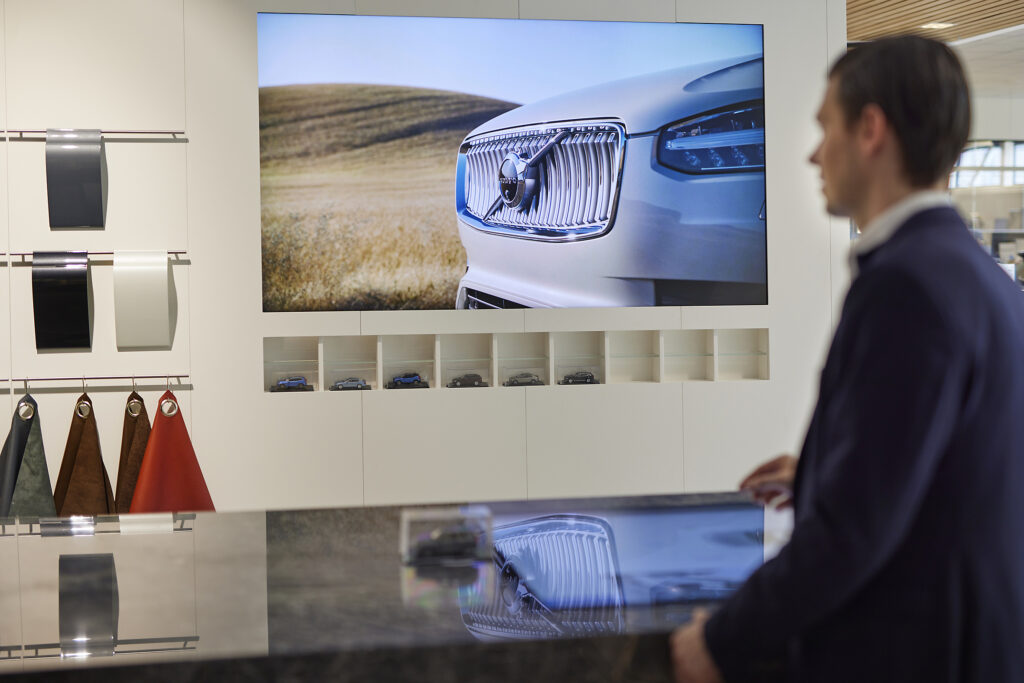The ultimate Volvo experience starts in the brand lounge. On an impact-size video wall, customers are immersed in the world of Volvo. With the latest releases and Volvo brand videos at exactly the right time. Coincidence?