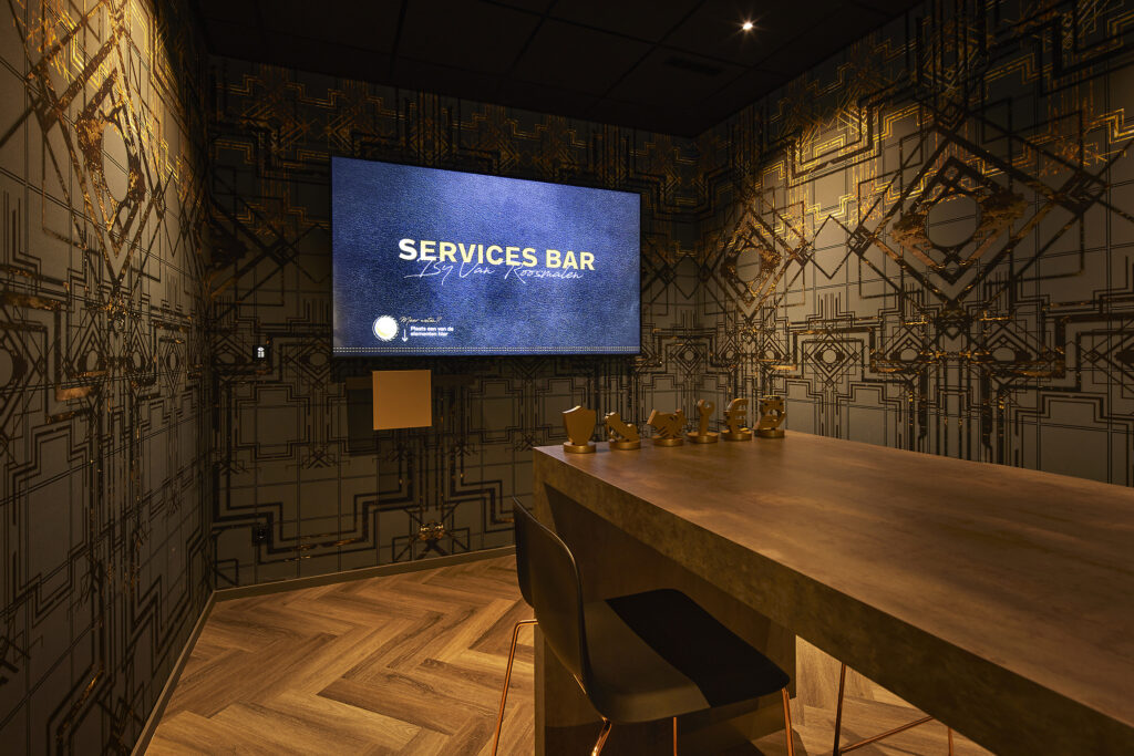 Choosing a new car is one thing. Services, such as financial services, maintenance contracts, and the like, are also part of the process. Together with Samsung, we developed a unique system in which customers lift and move service icons with RFID chips on a tray. Once they put down a piece, their chosen scenario is immediately displayed in real life on a life-size display. Omni-channel is the magic word. Interaction does the rest. Sales teams get the opportunity to really help their customers, close deals, and provide additional services.